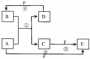 (2)若A为常见的金属单质,D、F是气态单质,反应①在水溶液中进行,则反应②(在水溶液中进行)的离子方程式是 ,已知常温下lg D与F反应生成B(气态)时放出92.3kJ热量,写出反应的热化学方程式 。