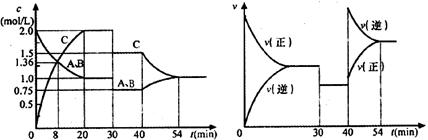 ,达到平衡后,只改变反应的一个条件,测得容器中物质的浓度、反应速率随时间变化的关系如下图所示。下列说法中不正确的是