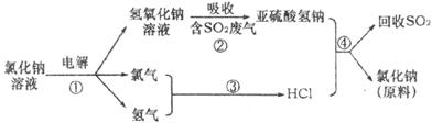 (3)近年来有人提出了一种利用氯碱工业产品及氯化钠循环治理含二氧化硫废气并回收二氧化硫的方法,该方法的流程如下: