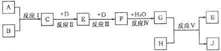 20.(10分)已知A、B、D、H是中学化学中常见的单质,J为蓝色溶液。转化关系如下(部分生成物及反应条件已略去):