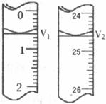 的HCl溶液滴定,滴定开始时读数为V1,终点时读数为V2(如下图所示);
