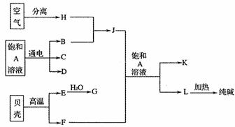 以海水中常见物质A为原料可以发展很多种工业,下图中包含了中学课本中介绍的几种基本工业生产,请根据物质之间的转化关系回答下列问题: