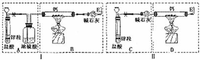 已知:碱金属或碱土金属(Ⅱ族)与H2在隔绝空气加热时要以发生反应,生成离子型金属氢化物,如NaH、CaH2等,它们易与水反应。现有甲、乙两位同学分别设计了制备CaH2的实验,装置如图所示(分别以序号Ⅰ、Ⅱ表示),铁架台等夹持固定仪器已略去。