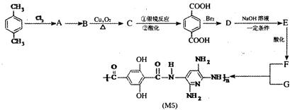 M5纤维是美国开发的一种超性能纤维,下面是M5纤维的合成路线(有些应未注明条件):