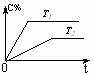 (2)相同的压强下,充入一定量的A、B后,在不同温度下C的百分含量与时间的关系如下图所示。则T1(填“>”、“<”或“=”)________T2,该反应的正反应的△H(填“>”、“<”或“=”)_________0。