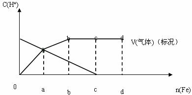 (4)已知到达d点时,反应完全结束,此时溶液中的主要阳离子为 ,且分析投入金属铁的物质的量之比为nc(Fe)/ nd(Fe)= 。