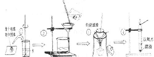 (2)操作④的试管加入③中所得滤渣,试管中迅速产生能使带火星的木条复燃的气体,自此推测滤渣中含有MnO2,写出试管中发生反应的化学方程式: ; MnO2的作用是