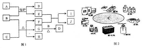 27.(14分)A~I为常见物质,其组成元素的原子序数均不超过20。它们之间的相互转化关系如图1所示,其中B为单质,其他物质均为化合物。C的用途如图2所示,D、G、H、I在常温下均为气体,D与I为可燃性气体且分子中电子数相等,J在工业上可以制取漂白粉。