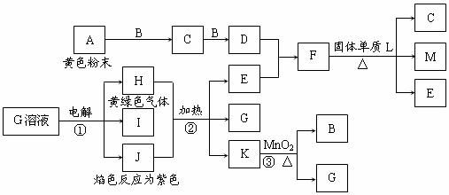 16.(8分)下图是中学化学中常见物质之间的相互转化关系。其中C可用于漂白,空气中M含量增加会导致温室效应。反应③常用于实验室制取气体B。