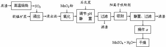 18.(10分)减少SO2的排放、回收利用SO2成为世界性的研究课题。我国研究人员研制的利用低品位软锰矿浆(主要成分是MnO2)吸收废渣高温焙烧产生的SO2,制备硫酸锰的生产流程如下: