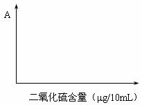 ⑶ 准确量取容量瓶中溶液10mL加入比色皿,测得其吸光度值为0.10,则空气中二氧化硫含量为 mg/m3。我国环境空气质量标准中对每次空气质量测定中SO2的最高浓度限值(mg/m3):一级标准:0.15;二级标准:0.50;三级标准:0.70。则该市空气为 级标准。