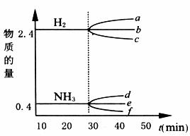 2NH3(g) + Q(Q>0),反应至20 min时,容器内各物质的浓度不再发生变化,此时测得H2为2.4 mol。