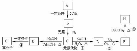 (3)碳烯与烃A反应,生成烃B,一定量的B完全燃烧生成8.8g CO2和4.5g H2O,B分子中含有3个-CH3,且能完成下列转化关系: