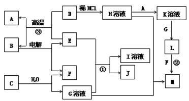 25.(15分)以下框图中A-M是中学化学常见的物质,其中A、E是金属,F和J为气体单质,其余均为化合物或其溶液,C为淡黄色固体,D为红棕色粉末,M为红褐色固体。
