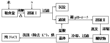 (1)粗食盐常含有少量K+、Ca2+、Mg2+、Fe3+、SO42-等杂质离子,实验室提纯NaCl的流程如下: