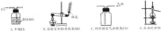 + Cl2↑+ 2H2O,据此,从下列所给仪器装置中选择制备并收集H2的装置_______(填代号)和制备并收集干燥、纯净Cl2的装置________(填代号)。
