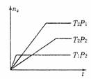 Z(气);△H<0,在不同温度(T1和T2)及压强(P1和P2)下,产物Z的物质的量(nz)与反应时间(t)的关系如图所示。下列判断正确的是 ( )