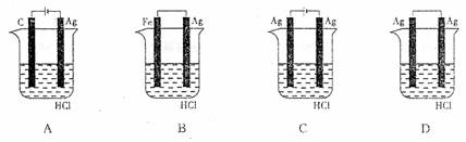 13.某同学欲完成2HCl+2Ag===2AgCl↓+H2↑反应,设计了下列四个实验,你认为可行的实验是 ( )