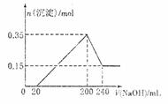 18.将一定质量的Mg和Al的混合物投入1 mol·L-1500mL稀硫酸中,固体全部溶解并产 生气体。待反应完全后,向所得溶液中加入NaOH溶液,生成沉淀的物质的量与加入NaOH溶液的体积关系如图所示。则下列说法正确的是 ( )