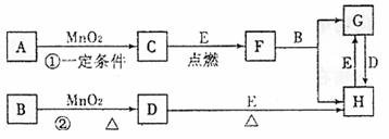 (1)若反应①是在加热条件下进行的,则A是(填化学式) ;若反应①是在常温条件下进行的,则A是(填化学式) ;若在上述两种条件下得到等量的C单质,反应中转移的电子数之比为 。
