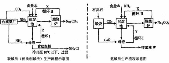 联碱法(候氏制碱法)和氨碱法的生产流程简要表示如下图: