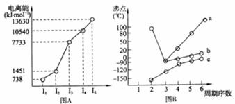 II 图B折线c可以表达出第 族元素氢化物的沸点的变化规律。两位同学对ⅦA族元素氢化物的沸点地变化趋势画出了两条折线a和b,你认为正确的是 (填“a”或“b”)