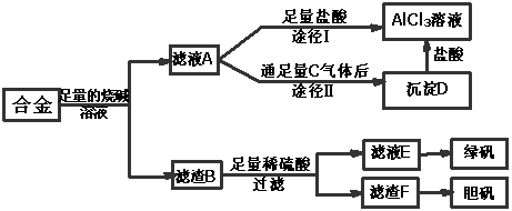 (3)由滤液A制得AlCl3溶液有途径Ⅰ和Ⅱ两条,你认为合理的是 (填写途径Ⅰ或Ⅱ);请写出途径Ⅱ得到沉淀D的离子方程式_______________________。