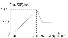 20.将一定质量的Mg和Al的混合物投入500 mL稀硫酸中,固体全部溶解并产生气体。待反应完全后,向所得溶液中加入NaOH溶液,生成沉淀的物质的量与加入NaOH溶液的体积关系如图所示。则下列说法正确的是 ( )