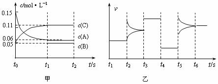 13.某密闭容器中加入0.3molA、0.1molC和一定量的B三种气体。一定条件下发生反应,各物质浓度随时间变化如图甲所示[t0-t1阶段c(B)未画出]。图乙为t2后改变互不相同的某一条件时反应速率跟时间的关系,其中t3-t4阶段使用催化剂。下列说法正确的是( )