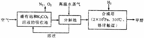 24.(15分)甲醇是一种可再生燃料,可以利用天然气等物质生产,生产成本低,用途广泛。最近有科学家提出:把含有过量CO2的空气(通常情况下空气中CO2的体积分数为0.030%,当空气中CO2的体积分数超过0.050%时,会引起明显的温室效应。)吹入碳酸钾溶液中,然后再把CO2从溶液中提取出来,经化学反应后得到甲醇,其构想技术流程如下: