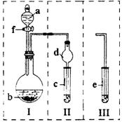 (2)在Ⅰ和Ⅱ装置组合中,若a为浓硫酸,b为铜粉,c容器中盛放品红溶液,旋开f后,给烧瓶加热,一段时间后c中的现象是 ,写出烧瓶中发生反应的化学方程式 。