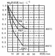 2NO(g)+O2(g)在三种不同条件下进行,其中实验Ⅰ、Ⅱ都在800℃,实验Ⅲ在850℃,NO、O2的起始浓度都为0,NO2的浓度(mol·L―1)随时间(min)的变化如图所示(不考虑生成N2O4)。试填空。