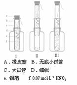 ②取一块铝箔系在细线的一端后,浸入NaOH溶液中,见表面产生气泡时,取出铝箔用水冲洗掉碱液。然后将铝箔再浸入HgCl2 溶液中,见表面呈现灰黑色(约1 min) 时,取出并将其放入上述准备好的小试管中,立即塞上橡皮塞,如图Ⅰ所示。