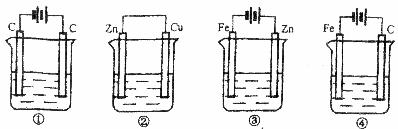 28、(19分) 下列四种装置中,①盛100 mL硫酸铜溶液 ②盛200 mL 0.01mol/L硫酸 ③盛200mL氯化锌溶液 ④盛200mL氯化钾溶液。