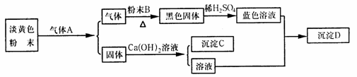 (3)淡黄色粉末与气体A反应的化学方程式为___________________________;黑色固体与稀硫酸反应的离子方程式为__________________。
