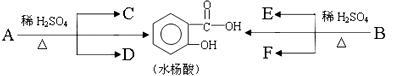 (3)B的结构简式是_______________________。水杨酸与小苏打反应的化学方程式是________________________________。C与F反应的化学方程式是 ,反应类型是____________。