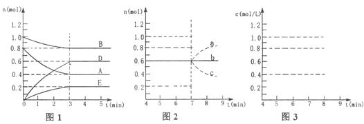 ②若在7min时仍为原平衡,此时将容器的容积压缩为原来一半,请在图3中画出7min后D浓度变化情况。