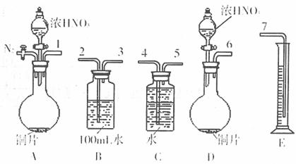 ②选用上图所示仪器组合一套可用来完成实验并测定生成NO体积的装置,其合理 的连接顺序是(填各导管口编号) 。