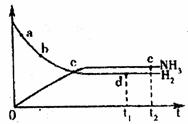 2NH3(g),△<0,在573K、300Mpa下n(NH3)和n(H2)随时间变化的关系如图所示。下列叙述正确的是( )