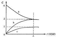 13.800℃时,a、b、c三种气态物质的浓度随着时间的变化情况如下图所示。由图分析不能得出的结论是