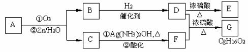II.上述反应可用来推断烯烃的结构。一种链状单烯烃A通过臭氧氧化并经锌和水处理得到B和C。化合物B含碳69.8%,含氢11.6%,B无银镜反应,催化加氢生成D。D在浓硫酸存在下加热,不能得到使溴水褪色的物质但可以得到唯一产物E。反应图示如下: