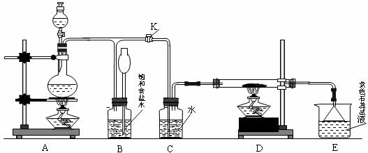 (5)D处反应完毕后,关闭旋塞K,移去酒精灯,但由于余热的作用。A处仍有Cl2 产生,此时B中的现象是 ,B的作用是 。