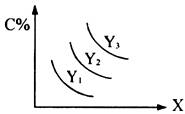 3C(g);△H>0,C的含量(C%)跟外界条件X、Y的关系如图所示,下列结论正确的是 ( )