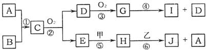 20.(8分)已知:A、B为常见的非金属单质且均为气体;甲、乙为金属单质,乙在I的浓溶液中发生钝化;C、H、J的溶液均呈碱性。各物质间的转化关系如下(部分生成物未给出,且未注明反应条件):