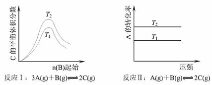 A.若反应I中△H<0,则T2>T1 B.若反应I中△H>0,则T2<T1