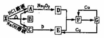 7.(14分)下图表示的反应关系中,部分产物被略去。X为1mol固体,A、B、C各为1mol无色气体,B常温下为液体。D为无色气体,G的液体溶液与Cu反应得E气体,F为红棕色气体。