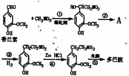 (4)多巴胺可有香兰素与硝基甲烷缩合,再经锌苯还原水解而得。合成过程示如下: