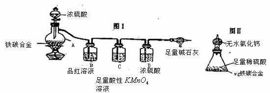 9.(18分)现有某铁碳合金,某化学兴趣小组为了测定铁碳合金中铁的质量分数,并探求浓硫酸的某些性质,设计了下图所示的实验装置和实验方案(夹持仪器已省略),请你参与此项活动并回答相应问题。