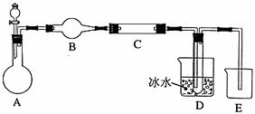 (1)装置气密性检验须在盛放药品前进行。在上图装置中,向烧杯E中加入水封住导管口,各连接处都紧密而不漏气的情况下,点燃酒精灯,微热烧瓶一会儿,导管口未出现气泡;熄灭酒精灯后,导管内水面也未上升,其原因可能是 。