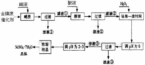 某油脂化工厂的含镍催化剂主要含有Ni,还含有Al(31%)、Fe(1.3%)的单质及氧化物,其他不溶杂质(3.3%)。部分阳离子以氢氧化物形式完全沉淀时溶液pH如下: